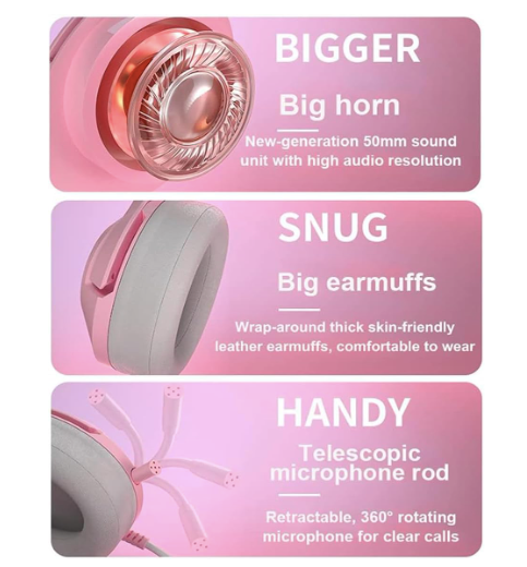 TECTED™ Kitty RGB Gaming Headset – Roze met Kattenoortjes